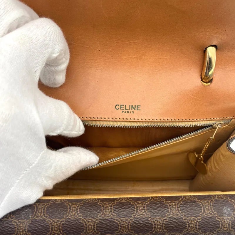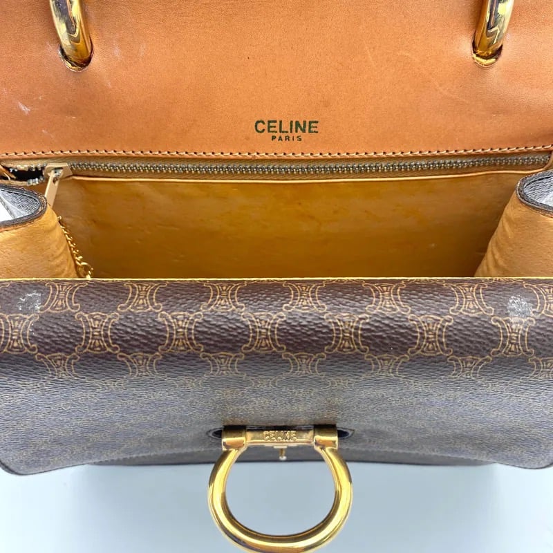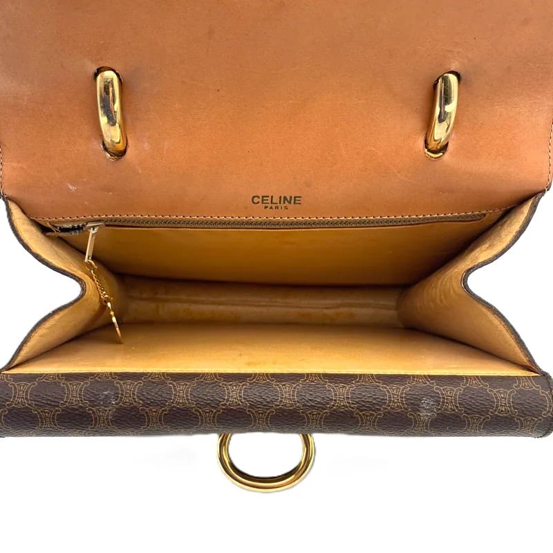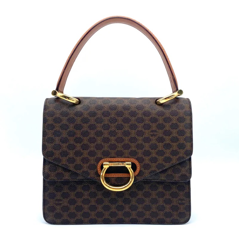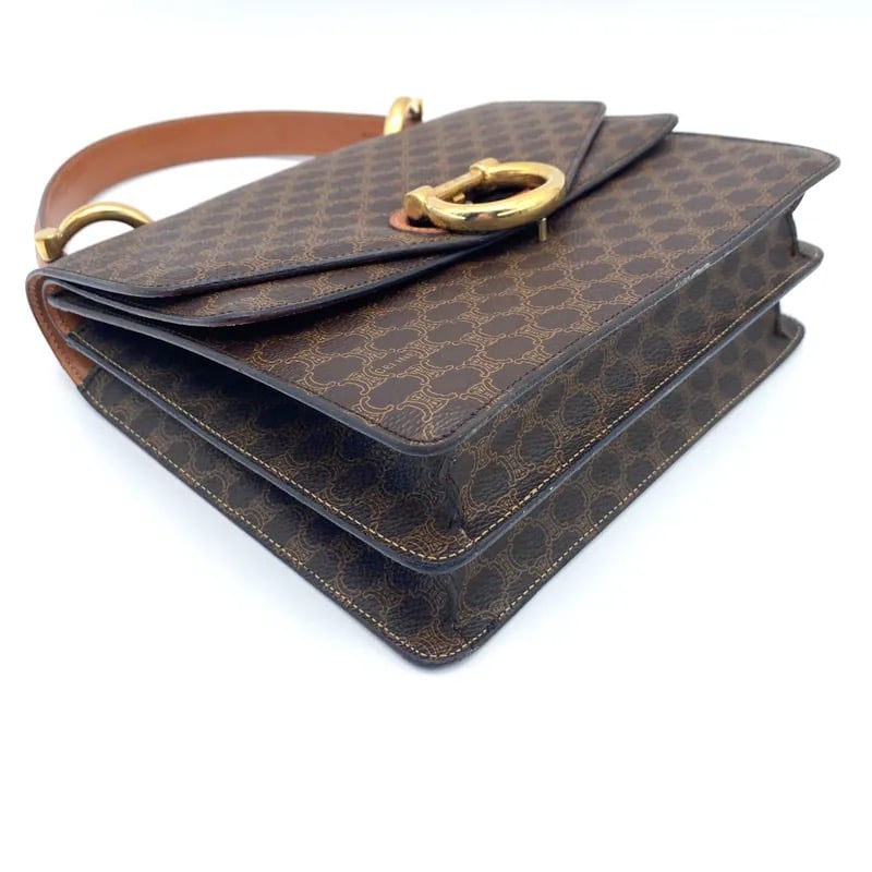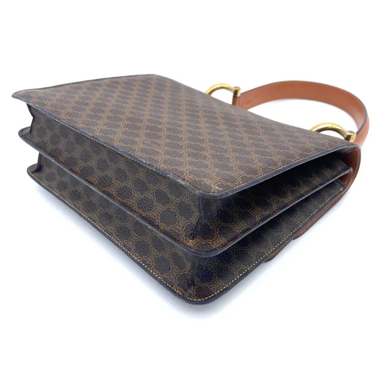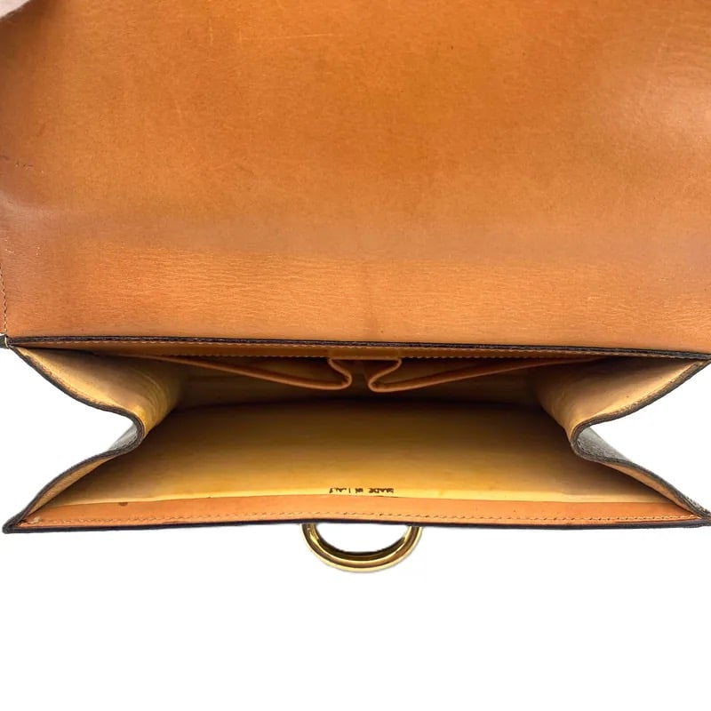 Ranking : B Colour : Brown Size : W21.5 X H18.5 X D6 cm Handle Drop : 15 cm Material : PVC X Leather Remark : Handle creases, metal frayed, Outside angular frayed, inside scratches and frayed