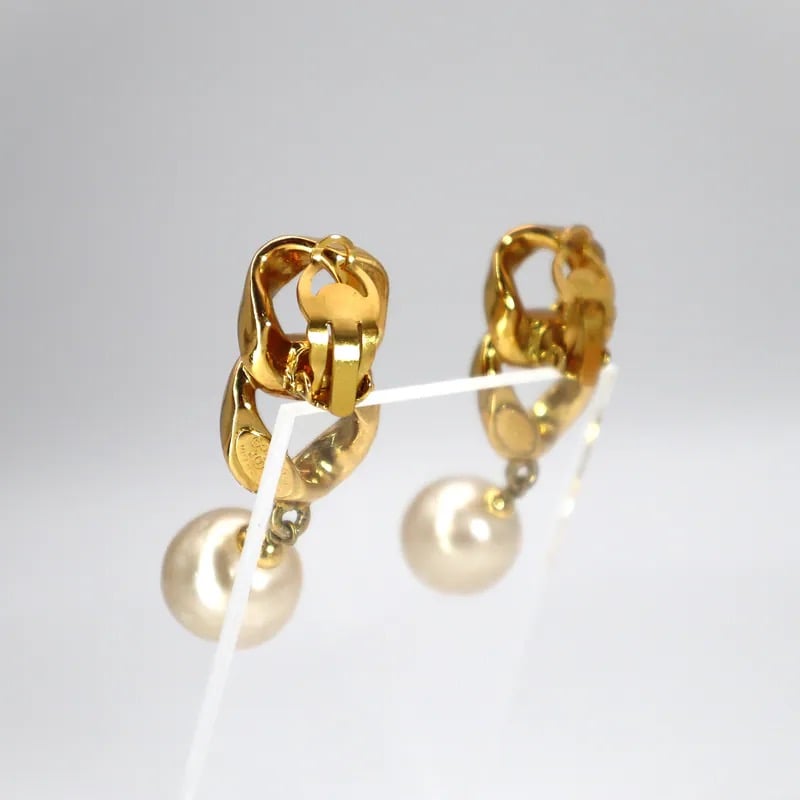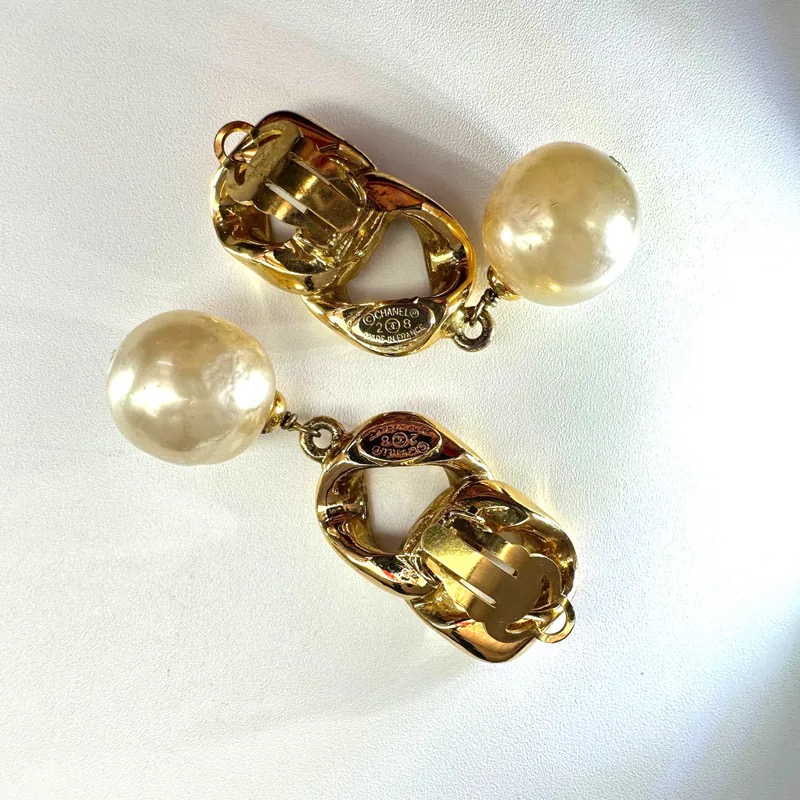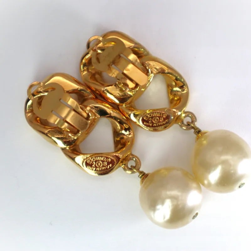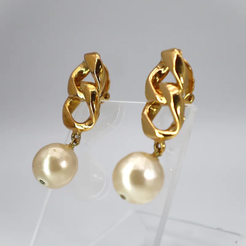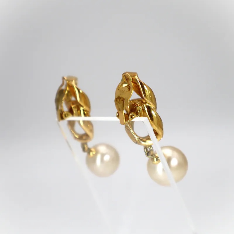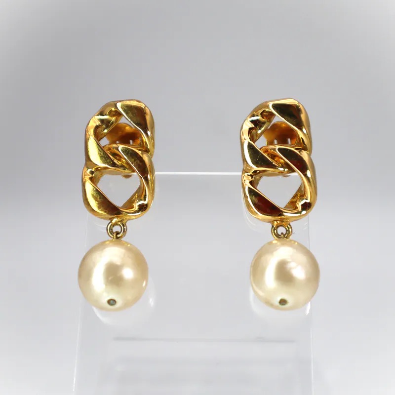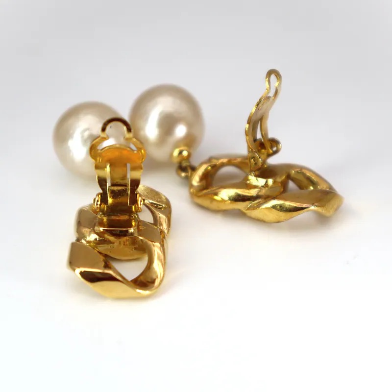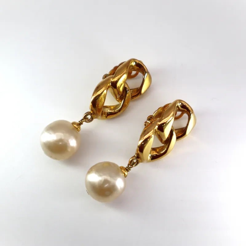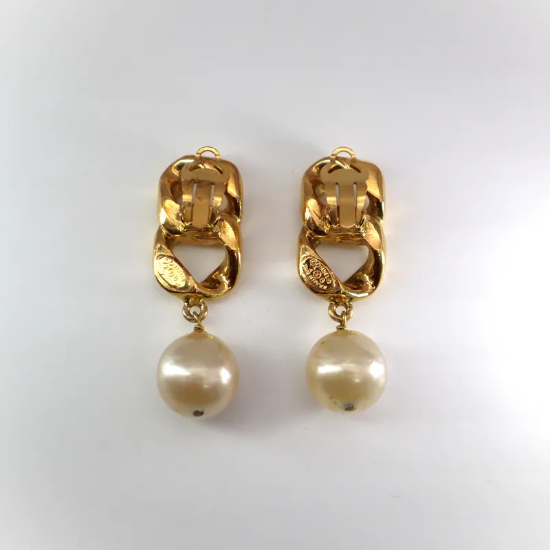 Chanel Vintage Chain Link & Pearl Drop Clip-on Earrings