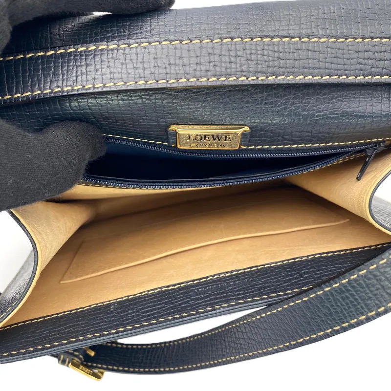 Ranking : AB Colour : Navy Size : W27X H24 X D7.5 cm Handle Drop : 10 cm Strap Length : 102-113 cm Material : Calfskin Model : Barcelona Remark : Inside scratches, with dust bag