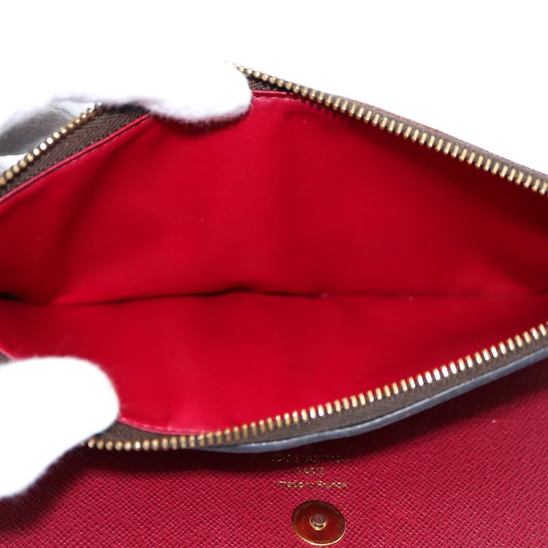 Ranking : AB Colour : Brown X Fuchsia Size : W21 X H10 X D1.5 cm Model : M61269 Material : Leather Remark : Outside frayed, inside minor frayed